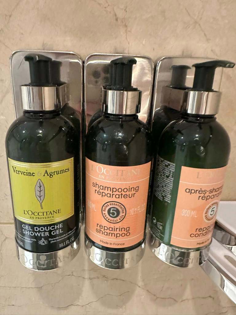 One of those little travel details that makes a big difference? The cabins on Avalon Waterways come stocked with L’Occitane toiletries from France, and I genuinely look forward to using them. L’Occitane is a brand inspired by the Provence region, famous for using high-quality, natural ingredients—lavender, shea butter, almond, and more—crafted into luxurious soaps, shampoos, and lotions. Everything smells amazing, feels indulgent, and makes your cabin feel just a little more like a five-star hotel.
