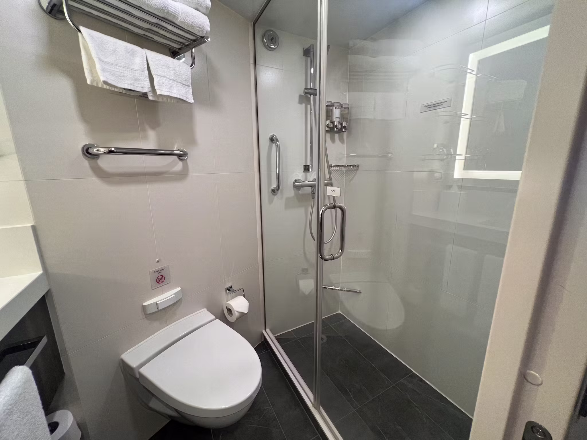 A good shower can make or break a cruise day, and the Pinnacle Class ships of Holland America absolutely get it right. The water pressure is excellent, the showers are a good size, and there are glass doors instead of clingy curtains—which instantly earns bonus points in my book.