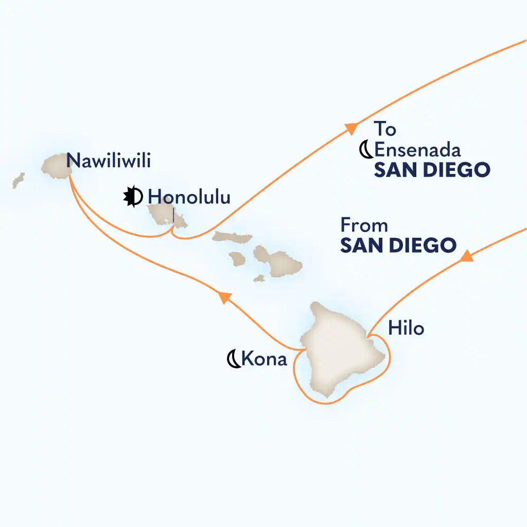 This Circle Hawaii itinerary includes visits to multiple islands, each with its own personality and scenery. Ports typically include: