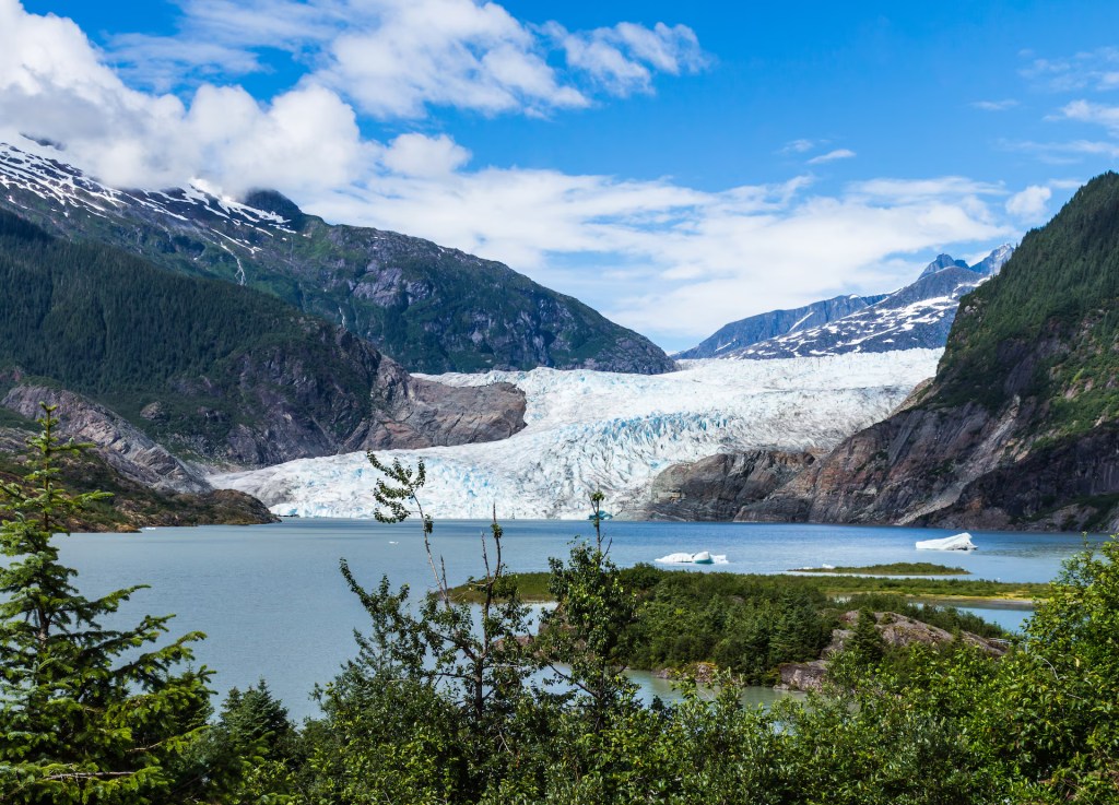 Juneau, Alaska’s capital, is surrounded by mountains and water, with opportunities for whale watching and glacier visits.